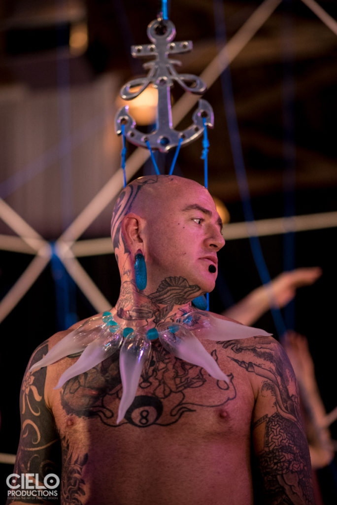 Laced and strewn through the space were also custom made glass sculptures by Jason Pfohl, in Oaxaca, creating a different kind of luminance to the spaces between the rope and bodies.